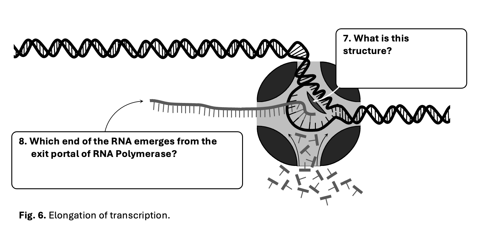 In Figure 6, question 7 asks for the structure. The answer is not RNA Polymerase. That is the larger structure. What is the structure inside the RNA Polymerase that splits the two strands of the DNA?